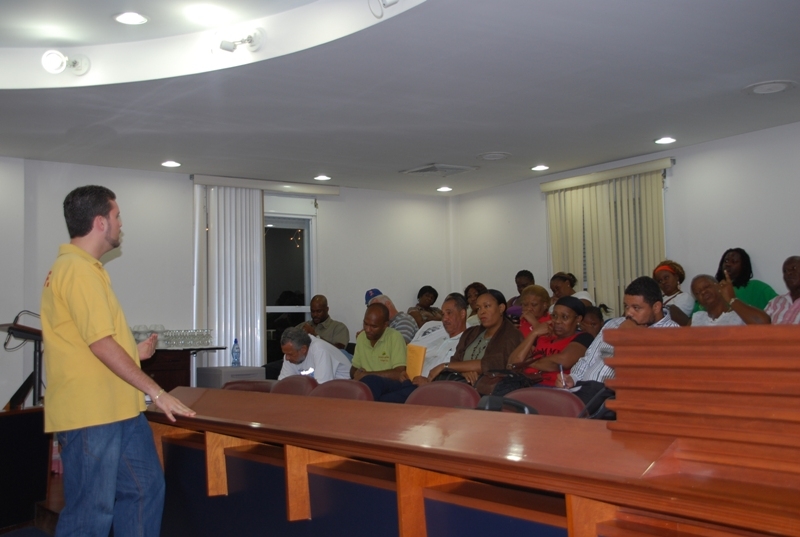 President of the SCDF Stuart Johnson address booth holders during the first stakeholder meeting