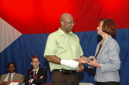 Youth Action Plan presented to Minister Jacobs by St. Maarten Caribbean Youth Forum Rep Choisy