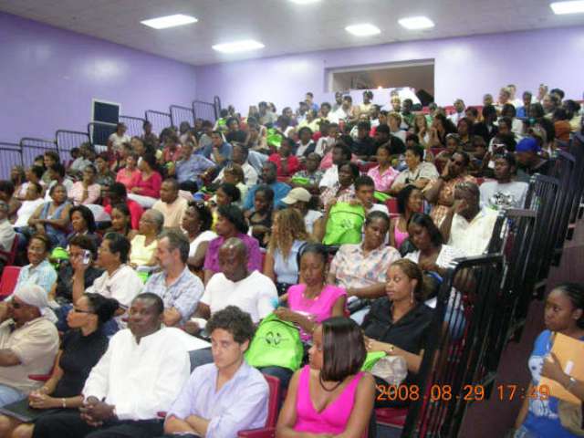 This year, 89 students were granted study financing for Holland by Government of St.Maarten. On Friday August 1st 2008, 81 of the students will depart St.Maarten to further their sutdies in Holland. The students will depart on KLM flight, accompanied by Calvin Mardembrough (head of study financing) and Commissioner of Education, Sarah Wescot Williams. While in Holland Commissioner Wescot Williams and Mr.Mardembrough will meet the board of the St.Maarten Student Support Services and visit cities to see how the students are adjusting to their new environment. UTS’s Service Market Manager, Michanou Arrundell presented the students with a UTS backpack containing a cell phone, t-shirt and other information. SMITCOMS presented students with a Natternet bag containing their own St.Maarten prepaid phone number, $5 credit to call home and tokens from the company.