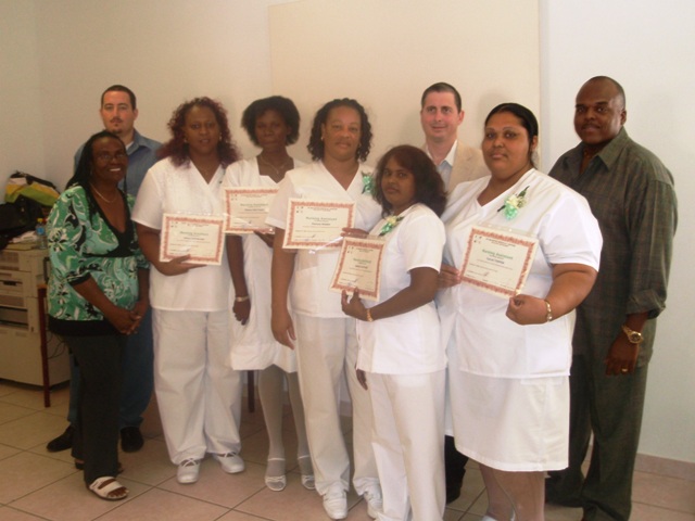 Mrs. Janice Massiah, Mrs. Patricia Hassell, Mrs. Carrol Lavia, Mrs. Jasmat Dasrat and Ms. Sislene Matthew all graduated as Nurses Assistants. The ladies has been following a six months course in Accelerated Nursing Assistant. This course was given to the ladies under the Education Department of the St. Maarten Medical Center.
