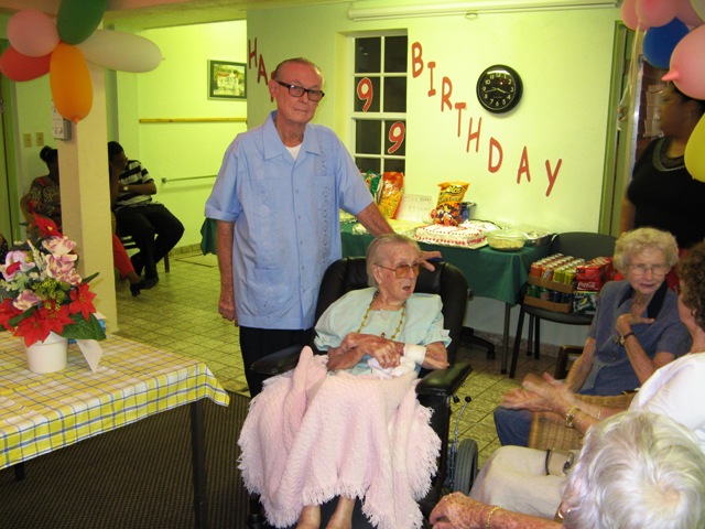 The managment and staff of the Hon. Henry Every Old Age Home organized a small celebration in her honor as she is the eldest resident also at the Home for the Aged. Acting Head of the Home Ms. Kim Withfield said that the managment and staff of the Home is very honored to have Ms. Olga reach the age of 99 years and we want to wish her many more years together with us at the home. Ms. Olga memory is not as good as before, but is still able to recognize certain people.