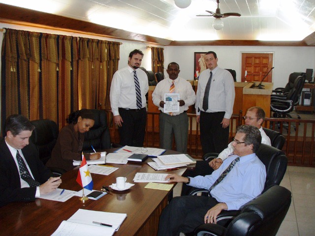 During the meeting, the Commissioners had a chance to officially hand over the first GIS newsletter of 2009. The Chairman of the Central Committee, Mr. Rolando Wilson, was happy to receive this newsletter and stated, "Communication is always vital in Government. I am happy to see this newsletter being issued to inform the people of Saba".