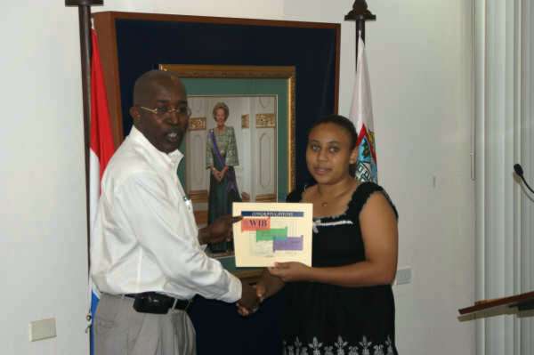 Youth Action Plan presented to Minister Jacobs by St. Maarten Caribbean Youth Forum Rep Choisy