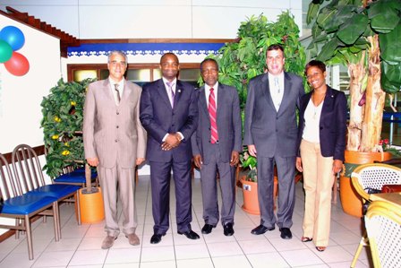 On Thursday December 3rd 2009, Secretary- General of CARICOM,His Excellency Edwin W. Carrington & Mareesha A. Stephens Research & Protocol Officer, (office of the Secretary General), were welcomed by Mr. Glen Carty-President of the SXM Chamber of Commerce & Industry and Mr.Ludwig A. Quenniche, Excecutive Director SBDF as the party arrived at P.J.I.A. while in transit.