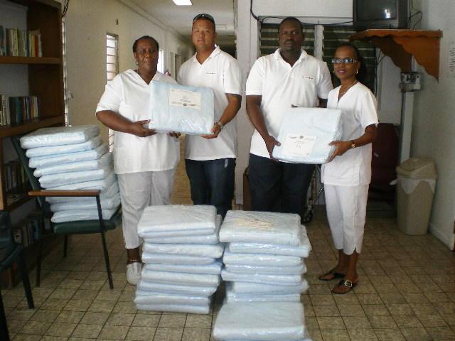 Making the presentation on behalf of the Saba Red Cross Chapter were president Mr. Antonio Hughes and Vice President Mr. Justin Yu. Mr. Hughes said that the Saba Red Cross found it fitting at this time to make this presentation to the two institutions. They presented both institutions with 30 blankets so that they can be used in their facilities. As Red Cross we always try to assist these institutions when we can and we had these blankets and we are happy to present them. When ever called upon we are always ready and willing to assist. In accepting the blankets both Ms. Wilson and Ms. Riley thanked the Red Cross and said that the blankets will be put to good use immediately.