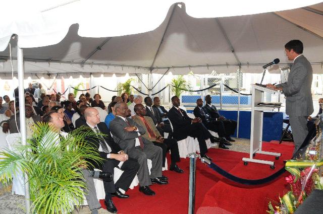 Commissioner Mr. Theo Heyliger and Lt. Gov. Mr. Franklin Richards joined in on the Celebration during G.E.B.E. Inauguration of it’s 2 New Engines on Friday afternoon at the Cay bay Power Plant facilities and donated Naf 50.000, to their adopted Orange School. Asst. principal Mr. Franklin Haddocks received the check on behalf of the school. Other Government Officials were also present at the Ceremony.