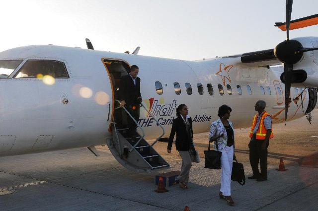 The Prime Minister of Jamaica the Honarable Mr. Bruce Golding and his entourage, arrived on a LIAT flight, returning home from a conference held in Dominica, were welcomed by Commissioner Mr. Xavier Blackman upon their arrival at P.J.I.A.