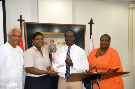 Presentation by members of the SXM Alzheimer Foundation. Mr. Raymond Jessurun, Mrs. Sophia Farrell to Com. Mr. Hyacinth Richardson and Miss.Patricia Pantophlet.