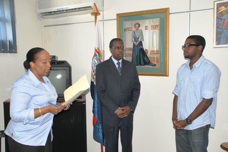 The oath was read to him by Miss Ligia Stella-Head of the Lt. Governor’s Cabinet.