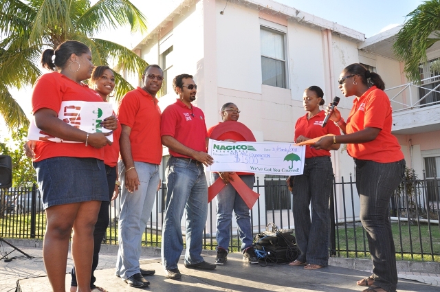 NAGICO hands over a check to the Sxm Aids Foundation