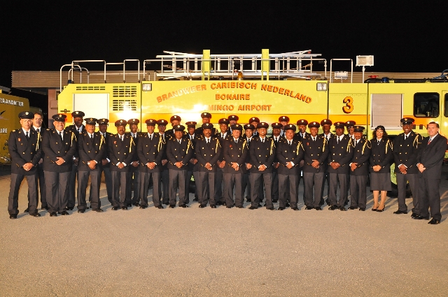 The Dutch Caribbean Fire Brigade Unit of Bonaire held a family day on July 23rd. The day was meant for fire workers, their parents and children and was preceded by a holy mass. During this day new uniforms for the Fire Department were officially introduced and there were various tributes. Due to exceptional efforts and continued support to the Fire Brigade Dutch Caribbean certificates of appreciation were presented to: R.A Thielman (35 years in service), F.H. Francees (35 years) W.F. Angila (30 years), C.A. Molina (30 years) and F.C.A. Goeloe (30 years).