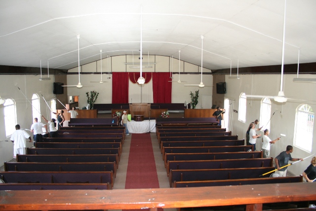 On August 21st staff of the U.S. Forward Operating Location (USFOL) in Curaçao donated their Sunday morning to paint the sanctuary and classroom of the local Seventh Day Adventist Church. Thirty men and women of the USFOL garnered paint brushes and rollers to put a fresh new face to the church’s interior.