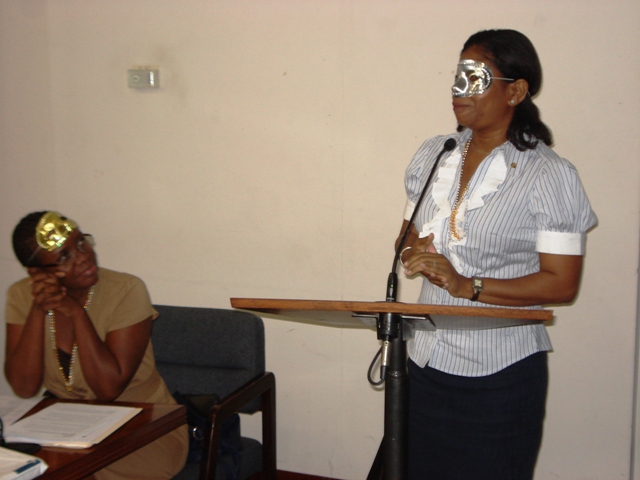 Toastmasters from the various Ministries within Government namely, Chantale Groeneveldt, Joy Arnell, Emilia Thomas, Catherine Conner-Arrindell and Denise Vijber unveiled their masks and revealed their true identity with their dynamic presentations of the theme Behind this Mask.