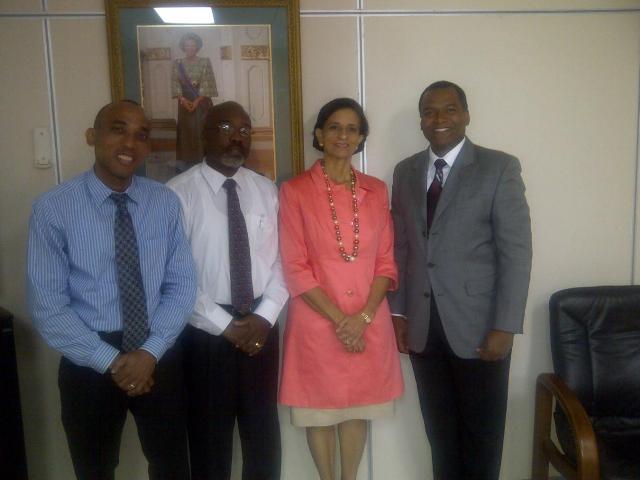 Prime Minister Hon. Sarah Wescot-Williams on Monday met with Caribbean Regional Manager of Money Gram International Steve Higgins to discuss future business relations with the country’s national postal authority PSS. Also attending the meeting was Chairman of the Board of PSS Hubert Pantophlet and PSS Interim Managing Director Denicio Richardson.