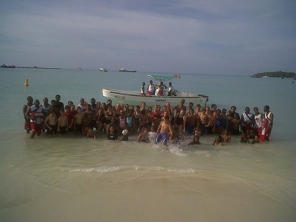 * The celebrations continued on Sunday Morning Bright and early with the Harbor to Pier Swim. Over 100 persons came out for this event. We had over 70 Swimmers. The event started a little over 7:00 AM and finalized at 8:30 AM. A big thank you went out to the Nature Foundation for securing the waters of Lion fishes and Lemon Sharks, Also thank you goes out to The Sheriff Security, the Coast Guard, The Jet ski service of Great by Jason Wilkins and last but not least Mr. Apon with his Canoe service. When comes to the preparations a big thank you goes out to Mr. Ernis Illis for bussing the group and The Bear Foot Restaurant who supported all participants with a Breakfast and a T – Shirt. Thank you also goes out to all persons especially the public. The event was split up in two categories Short distance three age groups and a long distance group split up in two groups . Results are as following: Winner Short Distance Heston Philbert and Leshawn in second Place. Other best performances went to Freiya Knagg, Ysa Bow best age performer and Sudihan Ozkan place 8th by the youth Groups. Daan Roossen best performance long distance Swim. Wimmer by the Long Distance Stephen Looser, in a close second Steven Clooser, and best performance long distance Rene Dros. Best Performance grownups goes to Tim Roossen, Eldert Louisa, Marriette Schrijvers and Peggy Illis who assisted Abby Illis 7 Years old in the swim. Also to all others not mentioned.