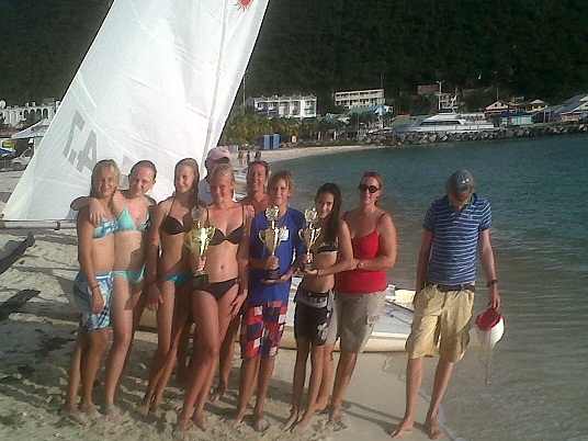 boats over and back up. This group showed the crowd present a display of their talent and skills needed on the water. This team was coordinated by Mr. Tim Roosen and Petra Gilders and her Instructor from Holland. This organization is offering a sailing scholarship on the Island for ages 10 to 14 certified swimmers only. See Pictures.
