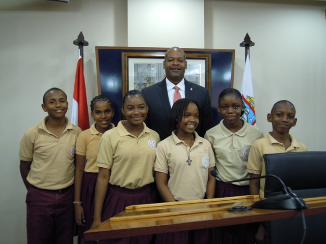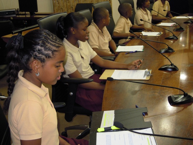 On Monday, March 05, 2012 students of the sixth grade of the Leonard Connor School paid a visit to the Government Administration Building, where they posed various questions to Minister of Public Health Social Development & Labor, Cornelius De Weever in the A.C. Wathey Legislative Hall.