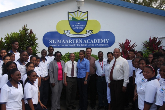 Students and staff of the St. Maarten Academy School unveiled a brand new school sign on the school premises last Friday.