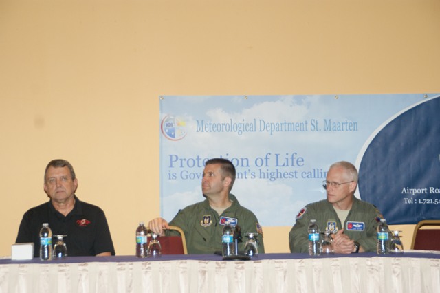 John Talbit, Lt. Col. Sean Pierce, 53rd WRS director of operations, U.S. National Hurricane Center Director Bill Read;