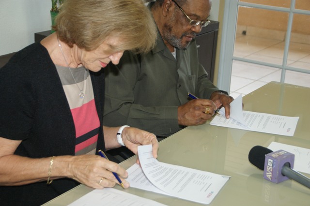 The signing of the contract between the Minister of Justice and the Dutch funding agency USONA, for the Renovation of the Point Blanche House of Detention/prison, took place on March 13th 2012.