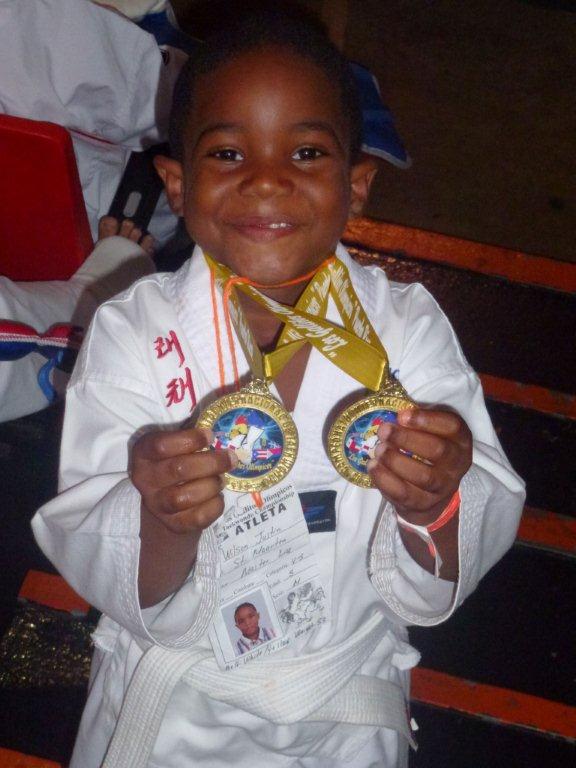 Justin Wilson, the youngest TAE KWONDO student who u featured in the Kids Herald on The 15 Feb to represent St. Maarten at the International Championship Games in Puerto Rico, won 2 GOLD Medals on Sunday March 11th.