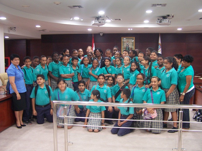 On Friday morning 47 six graders from the St. Dominic’s Primary School along with their teachers and support staff, visited the House of Parliament at Wilhelmina Straat in Philipsburg.