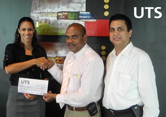 In picture: Foundation president Ashok Aswani and Foundation member, Robin Ramrattan accepting the sponsorship contribution towards the Art of Living Foundation Multicultural Peace Event from UTS Marketing and Communication Officer, Ivy Lambert. UTS pledged its support to the vent on the occasion of World telecommunications Day, Which is on May 17 each year.