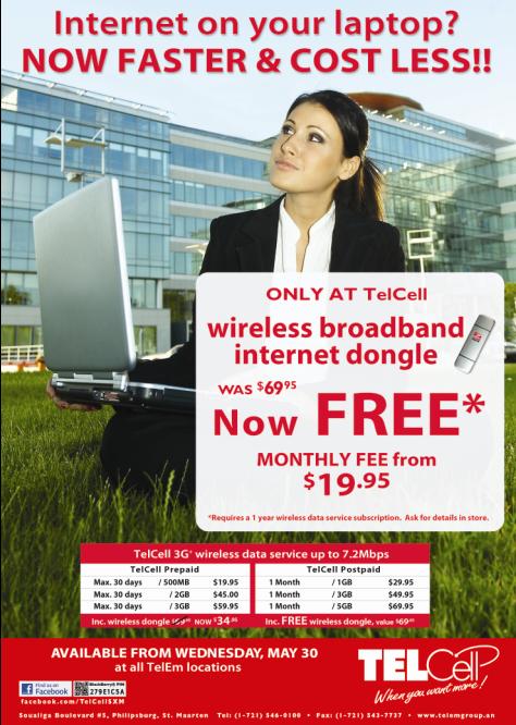 TelEm Group mobile provider, TelCell today announced plans to slash wireless broadband rates for post-paid and pre-paid customers on St. Maarten.