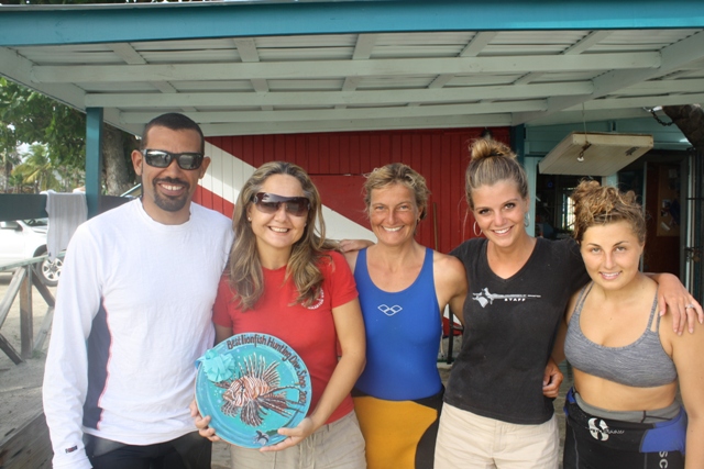 Ocean Explorers Dive Center was anounced as ‘The Best Lionfish Hunting Dive Shop 2012’ with the most lionfish caught. Second place was taken by Aqua Mania and thirth place was shared by Blue Bubbles and Scuba Fun. Also prizes were for the ‘Biggest’ and ‘smallest’ lionfish. The biggest lionfish was brought in by Blue Bubbles and the smallest by Ocean ExplorersPrizes were donated by Artist Johanny Dietvorst van Bussel, The Scuba Shop, Vanity Firts, Ray’s Jewellery, Tommy Hilfiger, Endless Summer, and Mist of the Carib, Chesterfields and Oualichi restaurants.