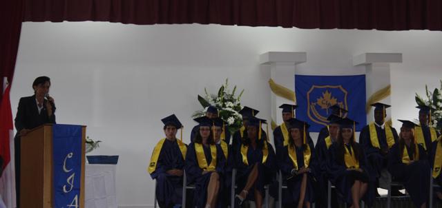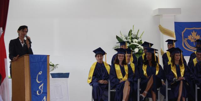 The Prime Minister of St. Maarten the Honorable Sarah Wescot-Williams give the commencement address at the Caribbean International Academy’s Commencement Ceremony on Monday.