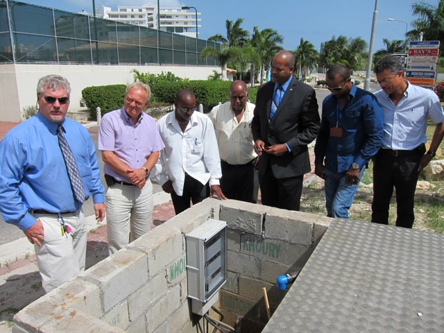 Minister De Weever was accompanied by staff of the Inspectorate of Public Health Social Development & Labor, GEBE, and Seven Seas St. Maarten. The tour started at Cupecoy where Minister De Weever was given a first-hand look of the wells in the area that takes in the sea water and further pumps it to the plant at Cupecoy. The tour continued to the Cay Bay plant, where Seven Seas officials explained the intake of water from the ocean and its further processing.