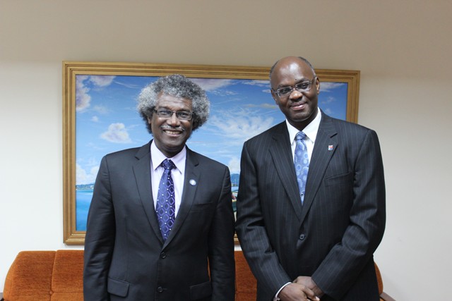 Governor Holiday also met with Sir Dwight Venner, Governor of the Eastern Caribbean Central Bank. During that meeting, Governor Holiday and Sir Dwight Venner discussed the structure of the central banks and the single currency systems in the respective monetary unions. Furthermore, they discussed economic developments and spoke about the promotion of savings, the exchange system as well as the balance between monetary and fiscal policy.