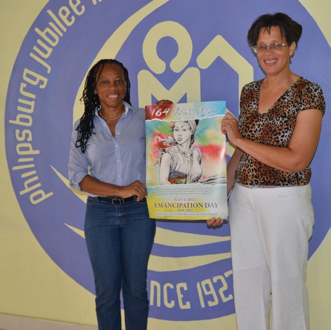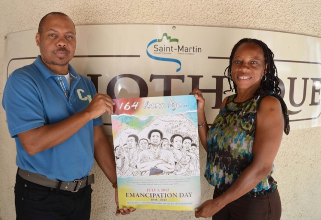 House of Nehesi Publishers (HNP) and Conscious Lyrics Foundation (CLF) presented the HNP Emancipation Day poster series 2012 to the Philipsburg Jubilee Library on Wednesday and to the Public Library in Marigot on Thursday.