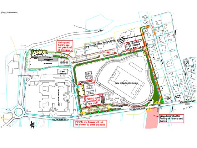 – The access road before the Raoul Illidge Sports Complex will only be accessible to school busses and shuttle busses for the duration of the completion of the access roads leading to the school premises.