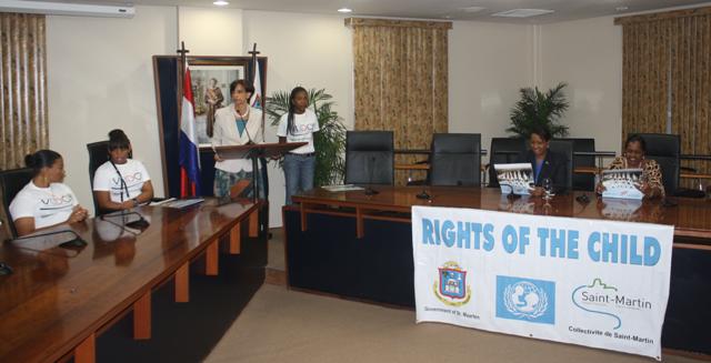 The Prime Minister of St. Maarten the Honorable Sarah Wescot-Williams joined Minister of Education, Culture, Sports and Youth Affairs the Hon. Silveria Jacobs and Member of Parliament the Hon. Sylveria Meyers in receiving the new Voice of Our Children Calendar. The PM congratulated the Voice of Our Children Foundation with the timely launch of the 2013 Rights of our Child Calendar organized by the Voice Of Our Children Foundation; "I want to congratulate all of you for the initiative to present the calendar. It is quite appropriate that as you focus on the rights of the children you have thought on a good way to bring the message across to the community of St. Maarten and that the message will stay in the mind of both children and adults. Coincidently in the Council of Minister’s meeting we approved the final draft of the changes of the Civil Code that has to do with children, parents and parenthood. There will be far reaching changes to the civil code which means that the communicating of these changes to the community is one of our biggest tasks, and what the VOOC has done is definitely part of this. We will go out and let the people of St. Maarten know what is occurring as we catch up with international standards and norms. I applaud you for making the rights of the child at the forefront of the National Agenda," concluded the Prime Minister.