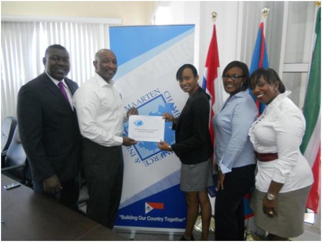 Photo from left to right: Arthur Bute Chamber Board President, Claret Connor Chamber Executive Director, Ashanti Labega KPMG Audit Assistant, Ms Withney Murray KPMG Secretary and Ms Tamara Leonard Chamber Board Treasurer.
