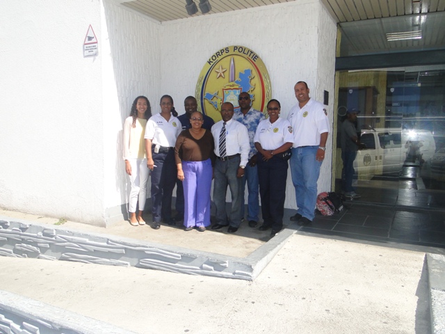 L to R: Drs. Eva de Weever, Major Helen Cristina-Romeo, officer Rensley Henson, Section Head health Care Maria Henry, Inspector Ricardo Henson, Health Inspector Lionel Francisca, Sergeant Arcella Leonard and Major Juan Statie.)