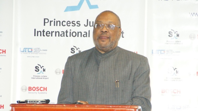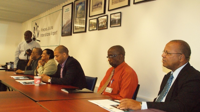 Attending the press conference were members of the Supervisory Board of Directors of PJIAE, Gary Matser and Cleveland Beresford, as well as top officials of the St. Maarten Chamber of Commerce, and directors and other staff of PJIAE.