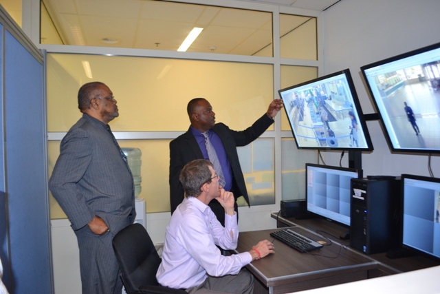 Photo Caption:Minister of Justice, Hon. Roland Duncan being shown the new CCTV system. (SXM Airport photo)