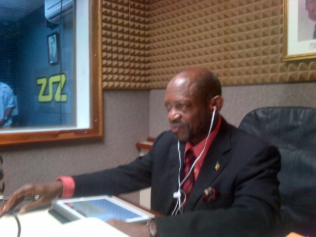 Photo: St. Kitts and Nevis’ Prime Minister the Rt. Hon. Dr. Denzil L. Douglas during Tuesday’s weekly radio programme "Ask the Prime Minister" at the Von Rebop Southwell Studio at ZIZ Broadcasting. (photo by Erasmus Williams)