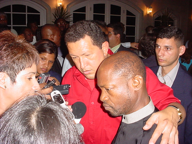 Photo: St. Kitts and Nevis’ Prime Minister the Rt. Hon. Dr. Denzil L. Douglas (right) with late President of Venezuela, His Excellency Hugo Chavez. (Photo by Erasmus Williams)