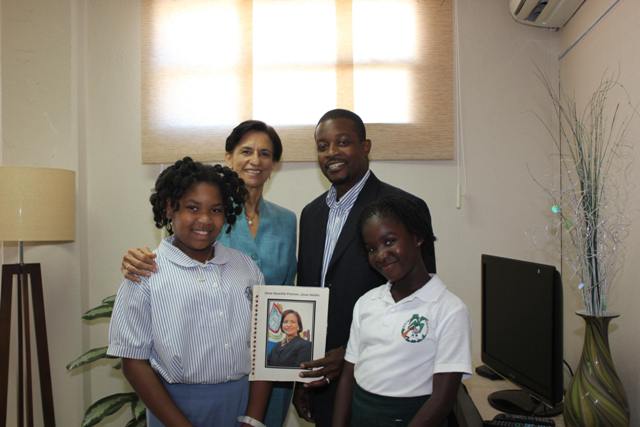 Caption: Prime Minister Wescot-Williams poses with Sister Magda Students Kishaya Proctor (left) and Shaquina Kleberg (right) and Interim Head of the Department of Communications and advisor to the two young ladies Mr. Rodney Richardson during the project presentation recently.