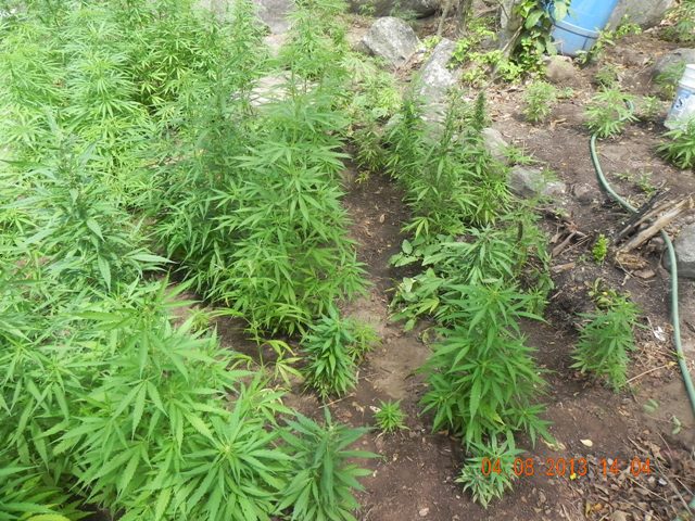 On Monday April 8th 2013 at approximately 12.30 p.m. the Police Department conducted a raid in the thick bushes on the hill between Brills drive in Middle Region and Gibbs drive in Dutch quarter after receiving information of a large marihuana plantation that was located in that area.