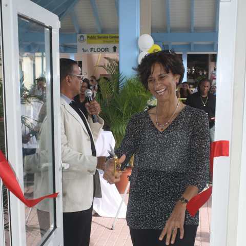 The Prime Minister of St. Maarten the Honorable Sarah Wescot-Williams on Saturday opened the Country’s first Public Service Center at the Simpson Bay Fish Market, an important step in her Government’s plans to increase the service of Government in the Various Districts.