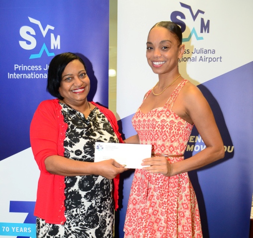 Local Award winning dancer and President of Art Saves Lives Foundation, Nicole C. De Weever recently received a donation from Ms. Regina Labega, Managing Director of the Princess Juliana International Airport for the upcoming workshops which will be held from June 24th -June 28th 2013 on St. Maarten.