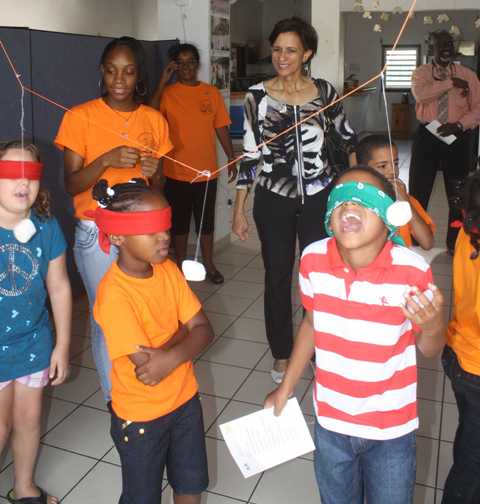 The event, which was organized as part of the inauguration of King Willem Alexander next week, featured various activities all centered around the theme of the inauguration. The Prime Minister enjoyed presentations on the activities centered on the Dutch Flag, the Throne Ganzenbord, a Match the Words game, Decorative Snack making, Take a Bite Game, the decorating of the children’s own crown, Can Throwing, Sjoelen, a Balloon Dance, a Sack Race, Egg Race and Bowling. The Prime Minister also took the time to take part in a few of the games. "It is so heartening to see these youngsters all dressed in orange engaged in activities centered on the inauguration.