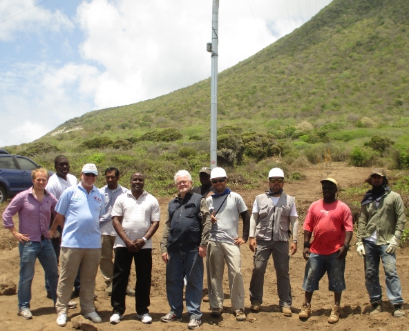 On this pictures: Commissioner Koos Sneek, Juan Diego Bolanos and Sebastian Zeledon of Nordteco, windexpert Herman Snel who on behalf of the ministry of EZ keeps in contact with Nordteco and analyses the wind data, Fred Cuvelay, Julius Robinson and teammembers of GEBE, Bauke Bakker of Alliander / GEBE, contractor mr Aventurin.