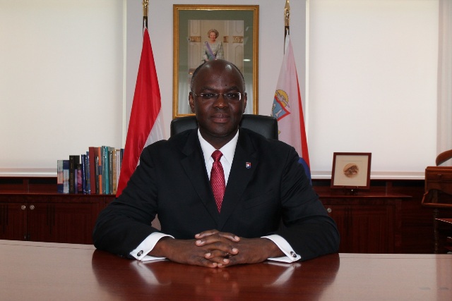 Today the people of Sint Maarten therefore join with our brothers and sisters in the Kingdom to pay homage to Queen Beatrix as we reflect on her reign. In Sint Maarten’s rich linguistic tradition I, in paying tribute, take this opportunity to say: Terugblikkend op deze periode is het mij een bijzonder genoegen, mede namens de bevolking van Sint Maarten en mijn vrouw, mijn diepe dank en bewondering te betuigen voor de manier waarop u zich steeds ten behoeve van onze bevolking met toewijding heeft ingezet. Yes as we take leave from you as our Queen I am on behalf of the people of Sint Maarten pleased and honored to express sincerest appreciation to you for your thirty three years of exceptional service as our Queen. Additionally I hereby express my deepest gratitude to Queen Beatrix for the opportunity and privilege to represent her as Governor of Sint Maarten.