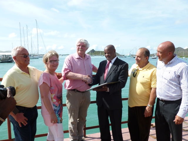 PHOTO CUTLINE: L to R, Harbour Supervisory Board Director Renald Williams, Mrs. Danser, Capt. Henk Danser, Minister Hon. Romeo Pantophlet, Harbour Supervisory Board Director Humphrey Mezas, and Harbour CEO Mark Mingo.