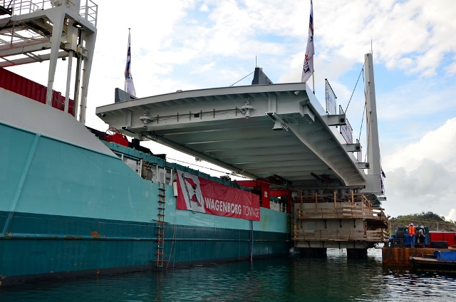 St. Maarten Harbour Group of Companies (SMHG) Chief Executive Officer (CEO) Mark Mingo announced on Monday that the Causeway Swing Bridge is in place. Mingo expresses gratitude to all those who have contributed to the project especially this particular part.